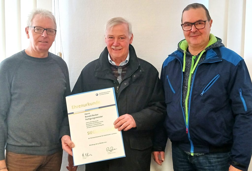In seiner Laudatio hob Matthias Kreß, Obermeister der Innung Metallbau- und Feinwerktechnik bayerischer Untermain, hervor, dass Ronald Becker nicht nur durch seine fachliche Kompetenz überzeugt, sondern auch durch seine menschliche Art: „Sein Engagement ist ein Vorbild für uns alle und zeigt, wie wichtig ehrenamtliche Arbeit für die Zukunft unserer Ausbildungsberufe ist.“